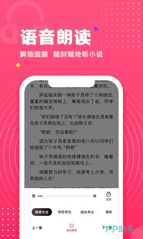 这个软件是一款免费阅读小说的软件,永久免费可观看阅读各种每一部小说,有许多按主题分类的小说可以查看,可以满足用户各种不同的阅读需求,另外这款软件还可以进行语音朗读,解放双手双眼,随时随地每日听书,还可以选择不同的朗读声音,根据自己的喜好调整使用不同的功能,还可以离线下载各种优质内容,可畅快尽情享受阅读。